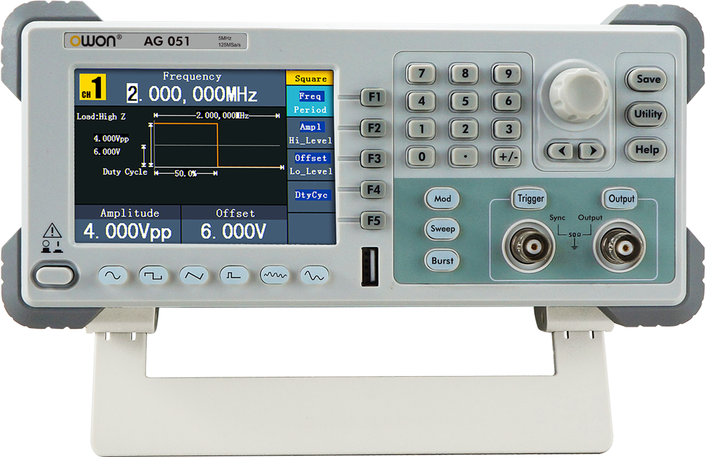 OWON AG051 представляет собой многофункциональный генератор, объединивший в одном приборе функциональный генератор и генератор сигналов произвольной формы.