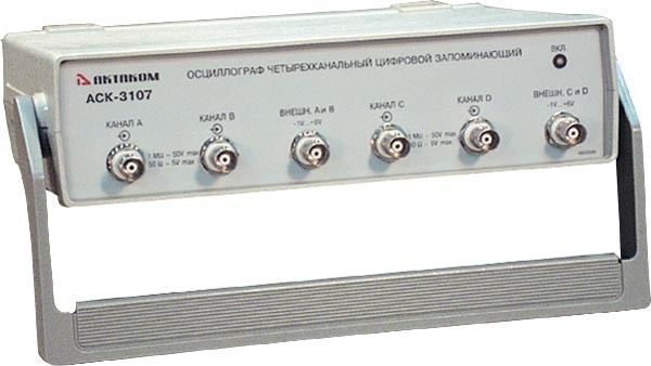 Цифровой запоминающий осциллограф — приставка к компьютеру АСК-3107 предназначены для широкого диапазона осциллографических измерений, встречающихся в электронике, разработке и научно-исследовательских лабораториях и используется совместно с персональным компьютером, снабженным параллельным портом LPT или USB - портом.