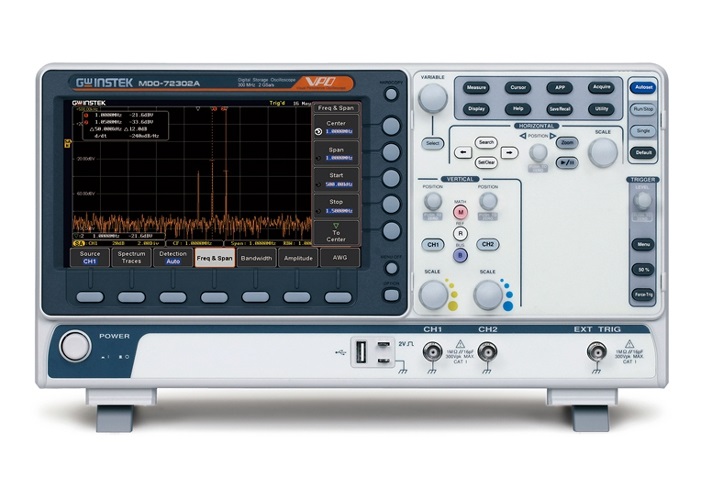 MDO-72000A (AG) представляет собой новую серию комбинированных цифровых запоминающих осциллографов с анализатором спектра и максимальной общей функциональностью «3 прибора в 1». Цифровой осциллограф MDO-72202AG обеспечивает регистрацию аналоговых, цифровых и радиочастотных сигналов с их корреляцией по времени. Специально разработанные и предназначенные для тестирования электронных схем и отладки РЭА, модель данной серии позволяют исследовать сигнал и выполнять измерения одновременно во временной и в частотной областях (Time/Frequency- mixed domain oscilloscope). В основу аппаратной реализации осциллографа MDO-72202AG заложена высокопроизводительная платформа серий осциллографов GDS/ MDO от GW Instek в сочетании с инновационными решениями по оптимизации вычислительных алгоритмов и самая современная элементная база.