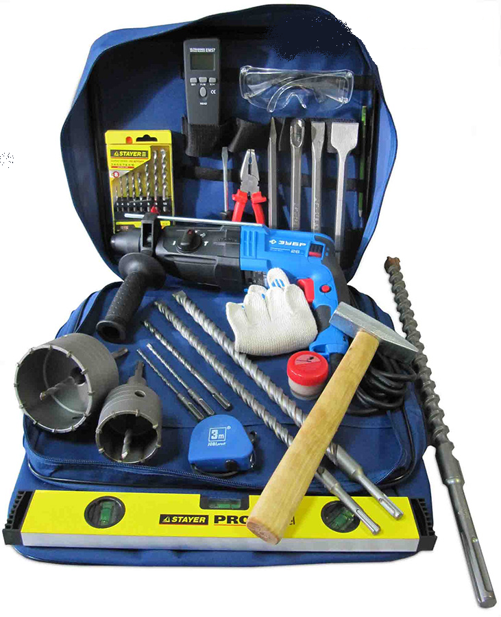 Набор инструментов для монтажа скрытой электропроводки предназначен для прокладки кабелей и проводов внутри конструктивных элементов зданий и сооружений (в стенах, полах, фундаментах, перекрытиях, в пределах чердаков).