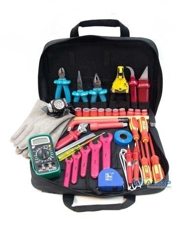 Набор электрика универсальный НЭУ®-М3 представляет собой профессиональный набор инструмента, позволяющий производить работы на электроустановках, станках, в шкафах, не отключенных от электрической сети. Основной инструмент, входящий в набор — отвертки, плоскогубцы, кусачки, ключи торцевые — изолирован.