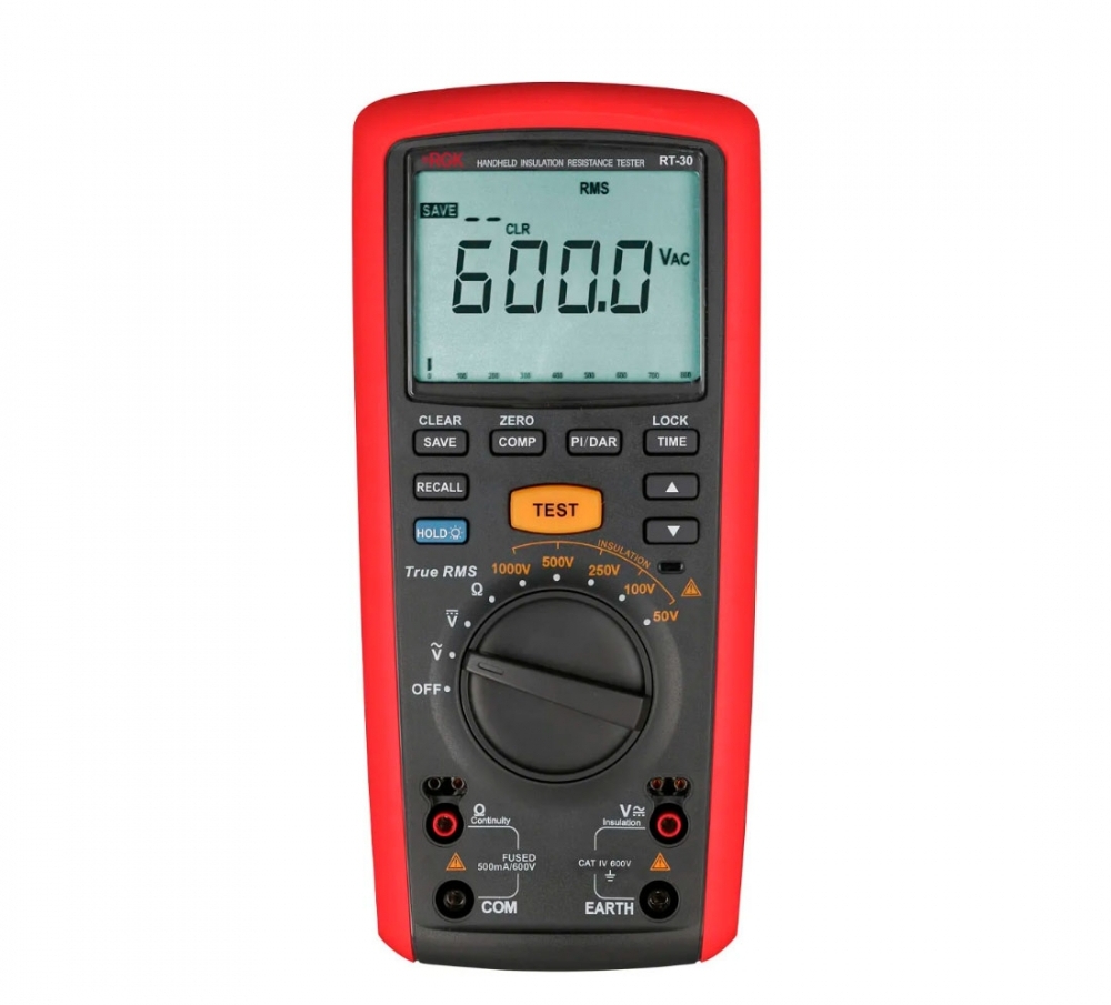 Мегаомметр RGK RT-30 предназначен для замера сопротивления изоляции, измерения малых значений сопротивления, напряжения переменного и постоянного тока. Применяется для оценки качества изоляционных материалов на широком диапазоне электрооборудования: трансформаторы, электрические машины, кабели, выключатели, электроприборы, является идеальным инструментом для техобслуживания, тестирования и диагностики электрооборудования.