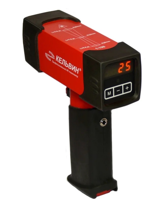 Серия Кельвин Компакт - представляет собой линейку переносных высокоточных пирометров, разработаных на базе 10-летнего опыта эксплуатации термометров "Кельвин" во всех климатических зонах Российской Федерации (эксплуатация на морозе до -20...-40 °C). Уникальное для компактного прибора оптическое разрешение для измерения температуры объектов 2- 5 см на 5-10 метрах. Сконструирован для надежной работы в условиях индустрии РФ ( металлический корпус IP65 с амортизирующими накладками). Лазерный целеуказатель, установка излучательной способности, установка порога сигнализации, фиксация последнего измерения, память на 1000 измерений, подключение к ПК, автоотключение.