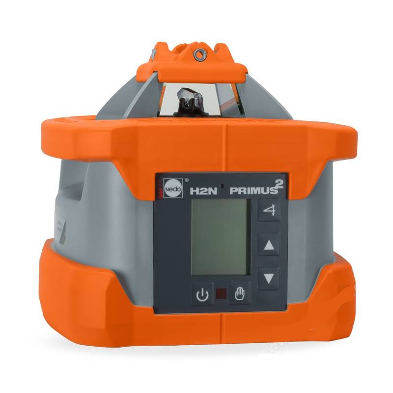 В отличие от других моделей, нивелир Nedo PRIMUS2 оснащен не только мембранной панелью управления, но и жидкокристаллическим экраном, на котором отображается вся необходимая информация, включая скорость вращения лазерной головки, угол её наклона, состояние батареи. Специальные кнопки позволяют изменять угол наклона лазерной головки в процентах по осям X и Y.