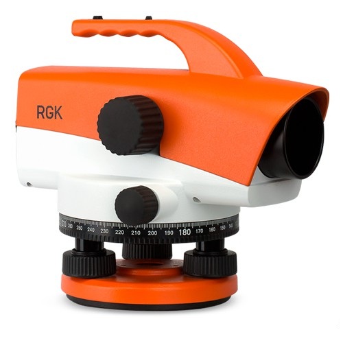 Оптический нивелир RGK C-32 – идеальный прибор для геодезических исследований. Небольшой вес и удобная ручка позволяют легко перемещать прибор между точками измерения, а прочный корпус, выполненный из качественного металла, соответствует стандарту защиты IPХ6 и надёжно защищает оптику нивелира от пыли и  влаги. Яркая оранжевая окраска прибора предотвращает случайное повреждение нивелира в сумерках.